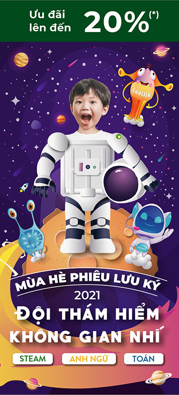 Đây là cơ hội để các phi hành gia nhí tham gia cuộc phiêu lưu vào không gian. Hàng tuần, các em sẽ cùng đi tìm lời giải cho những bí ẩn về thành phố trên không, các hành tinh, hệ mặt trời, rèn luyện các kỹ năng STEAM như thuyết trình, xây dựng mô hình, nghiên cứu khoa học, song song với việc phát triển kỹ năng tiếng Anh. Mỗi tuần sẽ là một dự án thú vị xoay quanh những chủ đề hấp dẫn, như khám phá bản chất không gian thông qua việc tái tạo mô hình hệ mặt trời và các hành tinh xung quanh, lập bản đồ các chòm sao, sáng tạo ra những phương tiện bay vào không gian như những nhân viên NASA hay SpaceX thực thụ. Đội thám hiểm nhí còn được tìm hiểu về lịch sử và sự phát triển của du hành không gian thông qua các dự án sáng tạo, rèn luyện kỹ năng thuyết trình, và được tiếp xúc với những tài liệu học tập thực tế, hứa hẹn đưa các em đắm chìm vào giấc mơ về cuộc sống giữa các vì sao…
